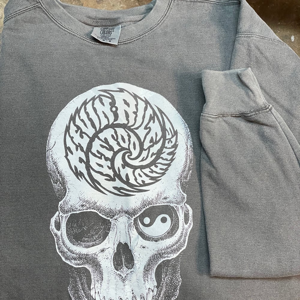 Also have a few crew neck sweatshirts in size large, but over a shirt they fit like a medium, so if you are a medium shirt person, grab a large crew neck. They are the same gray with a light gray print.